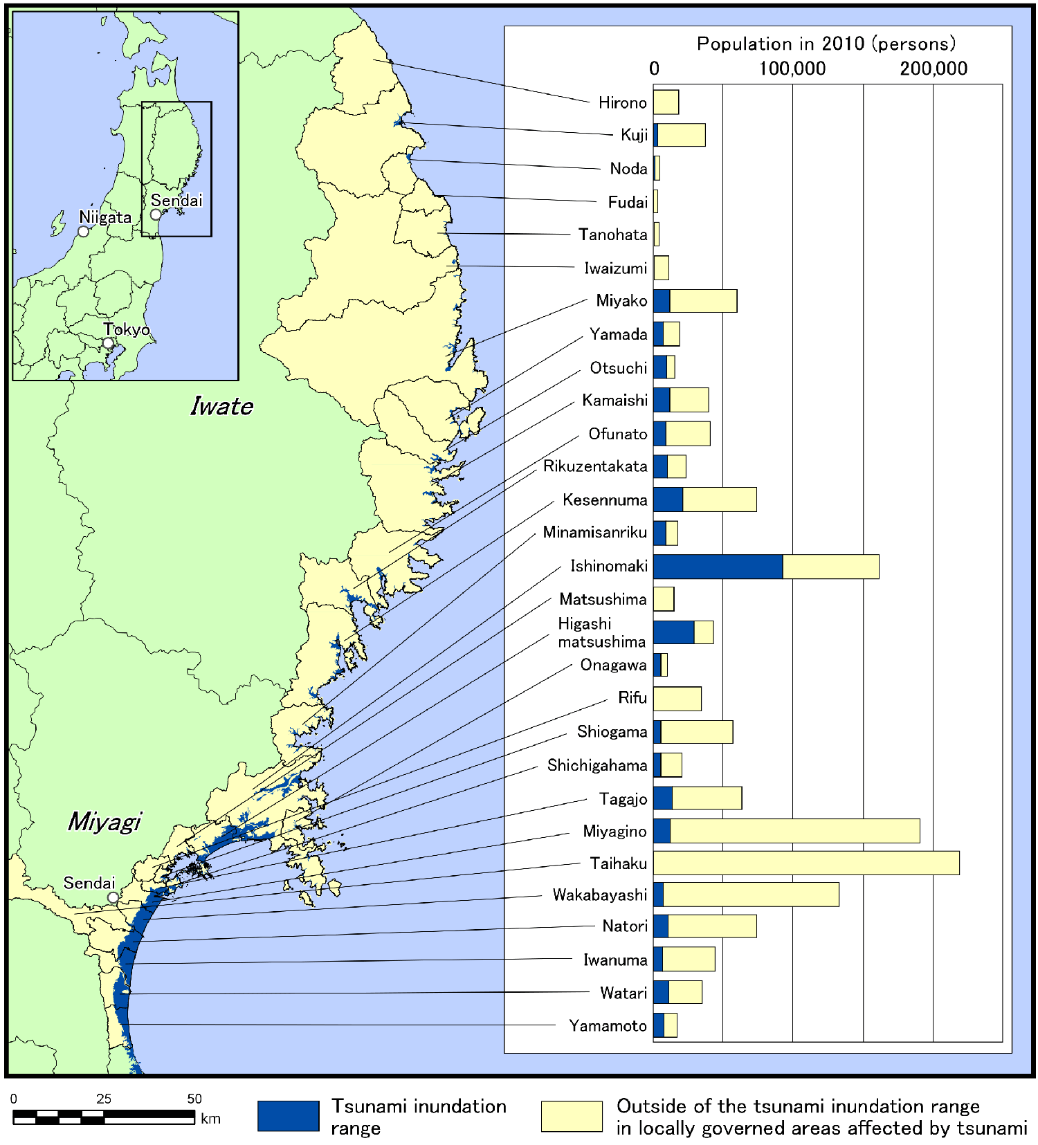 Population in areas affected by the 2011 tsunami off the Pacific coast caused by the Tohoku Earthquake: From Sanriku coast to Sendai Bay areaThe 2011 East Japan Earthquake Bulletin of the Tohoku
