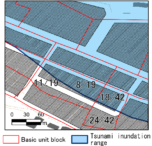 The population in the tsunami inundation range estimated in the present work does not necessarily represent the decrease of population that was actually suffered. Furthermore, the extent of the calamity cannot be discussed because tsunami height distribution data are unavailable. Nevertheless, information related to the prior population of areas that were influenced by the tsunami is important as basic data to support restoration plans. Particularly, local governments with a high population ratio in the tsunami inundation range must reconsider the previous structure of the city and community when producing restoration plans. Notes