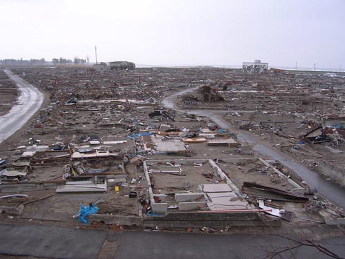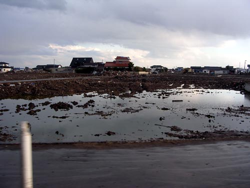 Damage to farmland5) includes increased salinity attributable to seawater flooding as well as the breakdown of agricultural facilities and deposition of rubble and mud. For example, in the Sendai Bay area, salinity of almost 10 times the standard level has been detected in flooded paddy fields. High salinity of farmland might bring adverse effects in raising crops. It is anticipated that salt damage might make rice planting difficult this year in 100 km2 of paddy fields in Miyagi alone6). That area accounts for over 70% of paddy fields flooded in Miyagi, and is equivalent to 14% of rice planting areas cultivated last year. Paddy fields of a comparable area in Fukushima are also regarded as facing difficulties in planting attributable to salt damage and radioactive pollution caused by the Fukushima Daiichi Nuclear Power Plant accident. Draining facilities, which are indispensable for desalinization, were damaged in many farmland areas. Including their repair, several years are assumed to be necessary until desalinization is completed and farmland is recovered. In the southern part of the Sendai Bay area, fields were inundated broadly and horticulture suffered severe damage. Strawberry vegetation was quite prosperous, making the "Sendai strawberry" brand of Watari and Yamamoto of this area quite popular. However 90% of such planting areas suffered tsunami damage. Facilities such as vinyl houses, etc., were devastated and salt damage prevails. Furthermore, in coastal areas, some lands remain underwater (Photo 2), and other lands are in danger of submersion with tide level change, by ground subsidence accompanying the earthquake. This discourages life reconstruction and resumption of economic activity. For that reason, integrated group relocation for inhabitants near the shore to higher altitudes inland is in discussion in city planning intended for reconstruction. Notes | |||||||||||||||