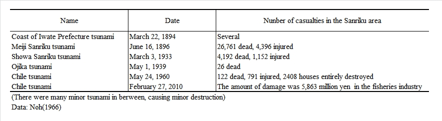 of major tsunami after the Meiji era. Sanriku coast is the area
