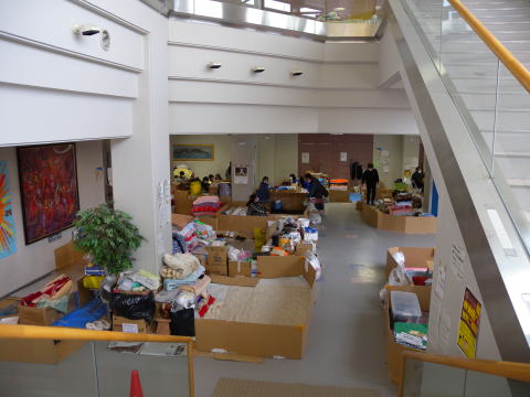 Photo 13. Relief supplies which were carried in the gymnasium, 5 May, 2011