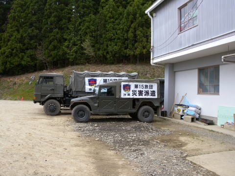| Photo 14. Vehicles of Japan Self-Defense Force supporting the shelter,