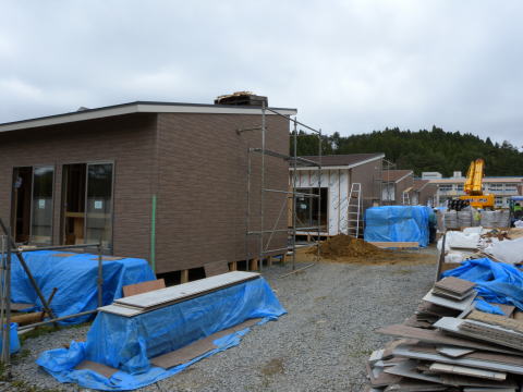 The governmental building of the Minamisanriku Town which was becoming obsolete, and it was thought that the building would not withstand the anticipated Miyagi earthquake and tsunami attack. Therefore a interim governmental building for